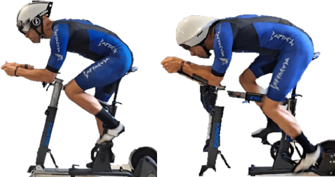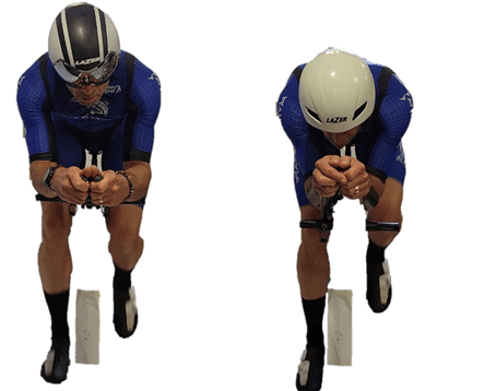 Once the bike fit is done you will be given a report with side on and head on shots and all the measurements to go with it. Analysis of the head on shots from before and after will be provided to see if there has been a reduction in frontal area. Reducing frontal area is a key factor to making you go faster through the air which reduces that all important Cda figure. The report is there to give you confidence the new position is more aerodynamic than before; the proof will be the times on the result board!